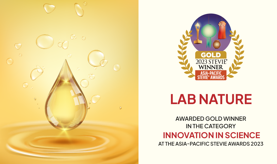 LAB NATURE’s hair restoration technology wins Innovation in Science at the 2023 Asia-Pacific Stevie Awards. This prestigious global award recognizes breakthrough technology that replaces silicone in personal care, providing sustainable and effective solutions.