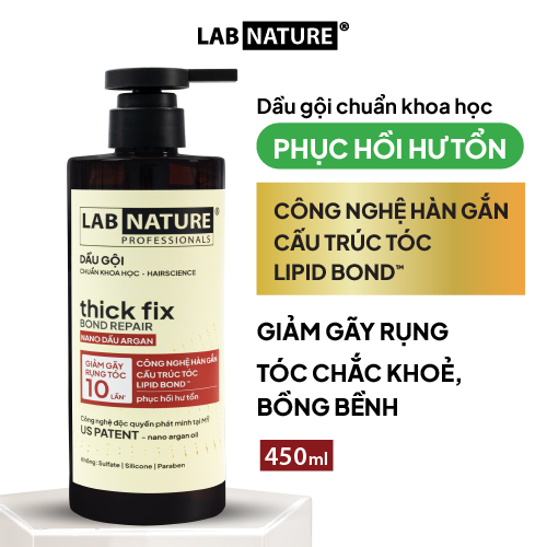 Dầu gội Ngăn rụng tóc Lab Nature Thick Fix – Công Nghệ Hàn Gắn Cấu Trúc Tóc Lipid Bond phát minh độc quyền tại Mỹ tối ưu hiệu quả giảm gãy rụng tóc. Công thức độc đáo giúp thẩm thấu sâu dưỡng chất vào từng sợi tóc, phục hồi hư tổn và nuôi dưỡng từ gốc đến ngọn, mang lại mái tóc chắc khỏe, suôn mượt và đầy sức sống.