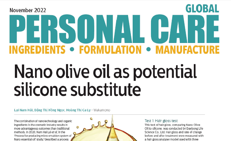 Tạp Chí Personal Care – Step Communications đưa tin nghiên cứu dầu gội chứa Nano Dầu Olive giúp tóc khỏe hơn so với dầu gội chứa Dimethicone. Đồng thời, Nano Dầu Olive giảm gốc tự do oxi hóa ROS; giúp tóc chắc khỏe, là lựa chọn lý tưởng giúp ngăn rụng tóc hiệu quả.